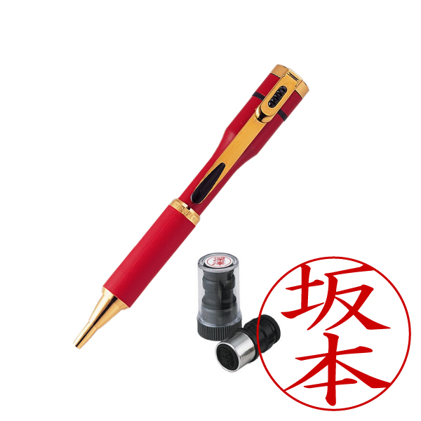 シャチハタ・ネームペン・キャップレスS・赤・ボールペン+ネームペン用ネームX-GPS・印面直径:9mm・インク色:朱・既製品[Shachihata・Xstamper・CAPLESS-S・TKS-BUS2+X-GPS]/商品コード:45602:49100