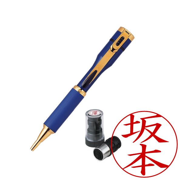 シャチハタ・ネームペン・キャップレスS・青・ボールペン+ネームペン用ネームX-GPS・印面直径:9mm・インク色:朱・既製品[Shachihata・Xstamper・CAPLESS-S・TKS-BUS3+X-GPS]/商品コード:45603:49100