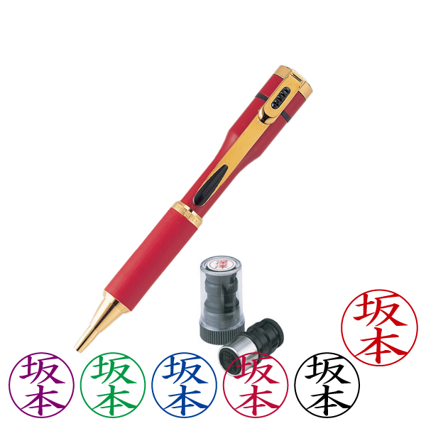 シャチハタ・ネームペン・キャップレスS・赤・ボールペン+ネームペン用ネームX-GPS・印面直径:9mm・インク色:5色より選択・既製品・メーカー在庫品[Shachihata・Xstamper・CAPLESS-S・TKS-BUS2+X-GPS]/商品コード:45602:49100