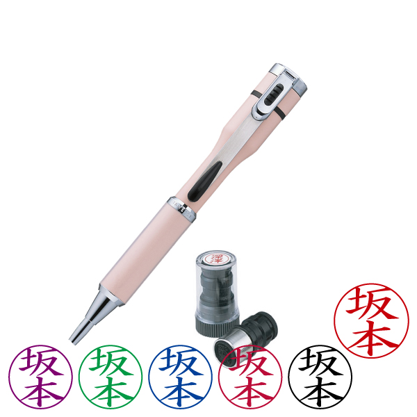 シャチハタ・ネームペン・キャップレスS・ペールピンク・ボールペン+ネームペン用ネームX-GPS・印面直径:9mm・インク色:5色より選択・既製品・メーカー在庫品[Shachihata・Xstamper・CAPLESS-S・TKS-CUS1+X-GPS]/商品コード:48401:49100