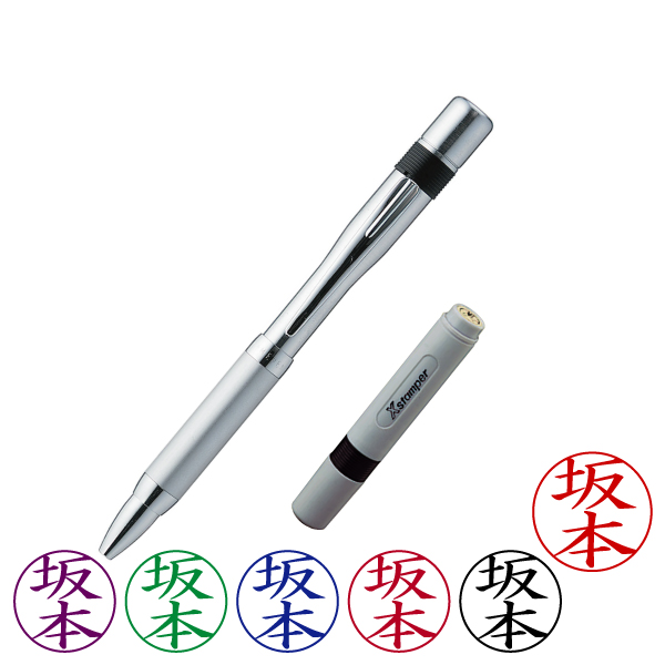 シャチハタ・ネームペン6・シルバー・ボールペン+ネーム6・印面直径:6mm・インク色:5色より選択・既製品・メーカー在庫品[Shachihata・Xstamper・NAMEPEN6・TKS-AMN+XL-6]/商品コード:50501:40800