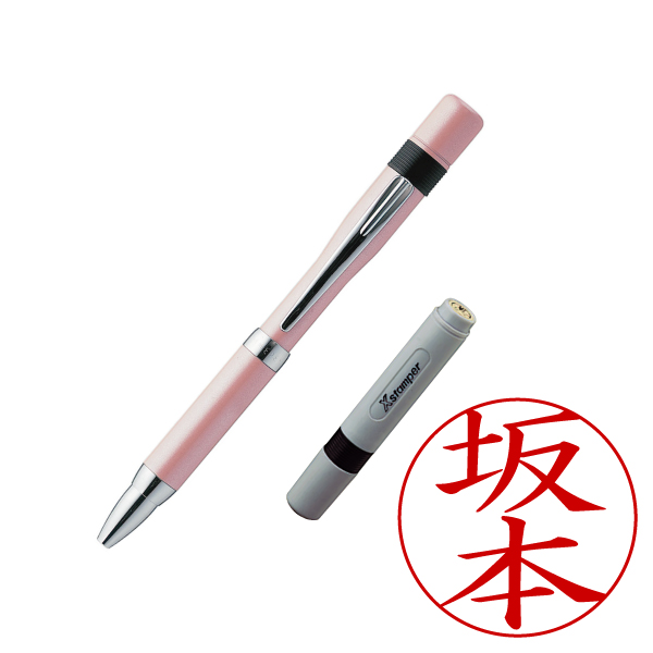 シャチハタ・ネームペン6・パールピンク・ボールペン+ネーム6・印面直径:6mm・インク色:朱・既製品[Shachihata・Xstamper・NAMEPEN6・TKS-BMN2+XL-6]/商品コード:50618:40800