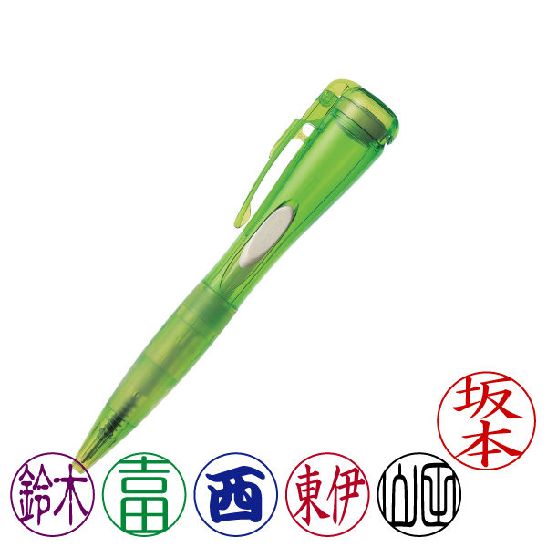 シャチハタ・ネームペンQ・クリアグリーン・ボールペン+ネーム印(メールオーダー・商品到着後印面申込)・インク色:6色より選択・既製品・メーカー在庫品[Shachihata・Xstamper・NAMEPENQ・NP-QU9/MO]/商品コード:09814