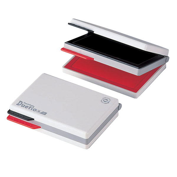 【 シャチハタ・デュエットスタンプ台 】 便利な2段式仕様の水性顔料系インクパッド「シャチハタ・デュエットスタンプ台」。 「黒+赤」、「黒+朱肉」の2種類から選べるシャチハタ・デュエットスタンプ台なら 通常、個別に用意しなくてはいけないスタンプや朱肉を一度に揃えられます。 また、光沢紙等には向いていませんが普通紙・和紙に対する捺印に適している為 書類への捺印などがメインの場合は、スペースも取らないオススメの商品です。 |