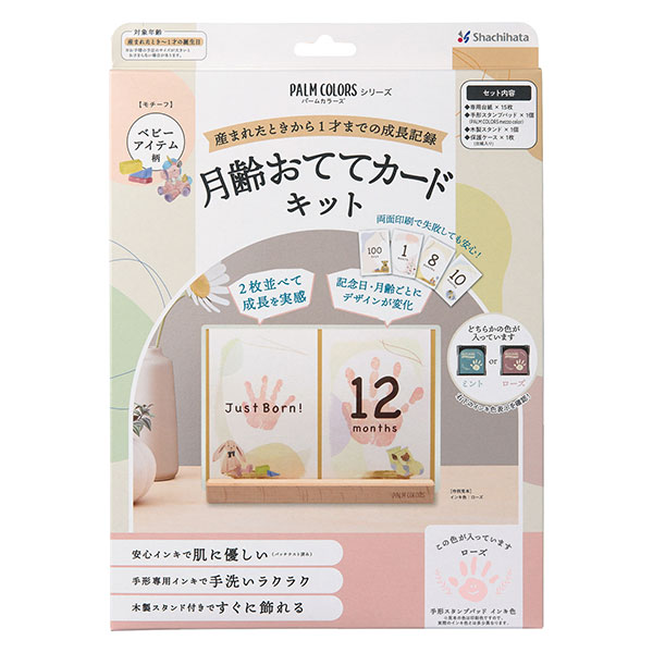 シャチハタ・PALM COLORS シリーズ・月齢おててカードキット ベビーアイテム柄 ローズ[Shachihata・HPSC-B/H-RP]/商品コード:40718