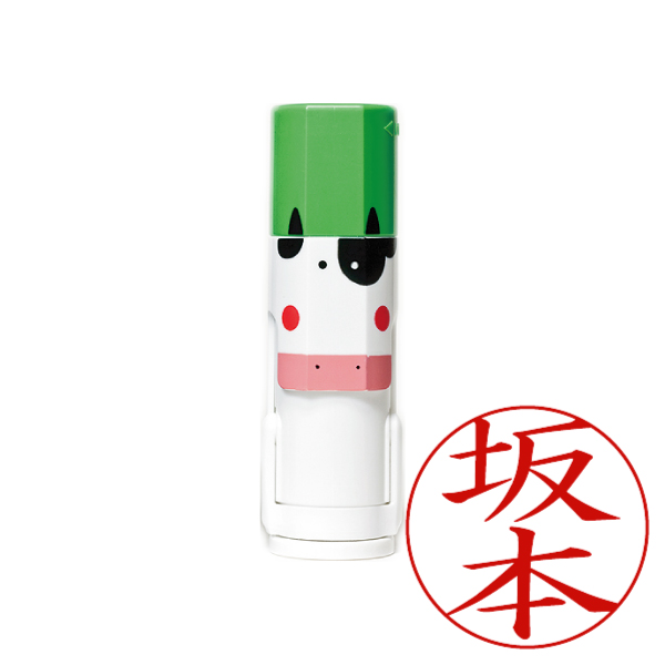 サンビー・クイックネーム・キャップレスネーム印・クイックC9・キャラクタータイプネーム印・ハンコアイドル フタんぴーず・ウシさん[既製品扱い]・印面サイズ9.5mm・インク色:朱[SANBY・QUICK NAME C9・FPK-M001]