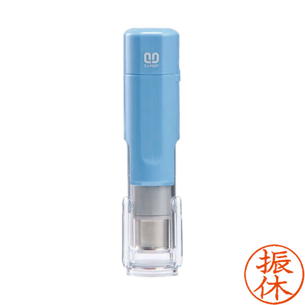 サンビー・クイックC6[キャップレス記帳印]【振休】(本体色:ブルー・印面サイズ6mm・インク色:朱)[SANBY・QC6-B026]