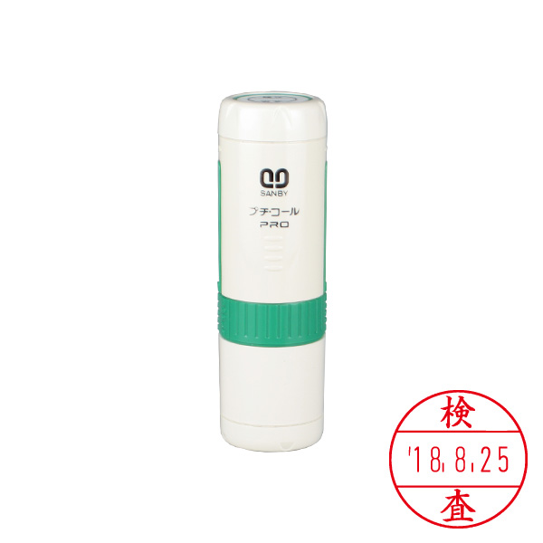 サンビー・プチコールPRO15(日付印)・元号・略西暦表示・印面直径:15mm(既製品・記帳用タイプ)【検査】・キャップ式・グリーン[SANBY・PETIT CALL PRO・PTP-15P]