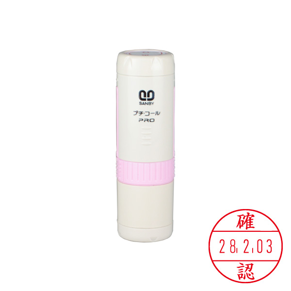 サンビー・プチコールPRO15(日付印)・元号・略西暦表示・印面直径:15mm(既製品・記帳用タイプ)【確認】・キャップ式・ピンク[SANBY・PETIT CALL PRO・PTP-15OP]