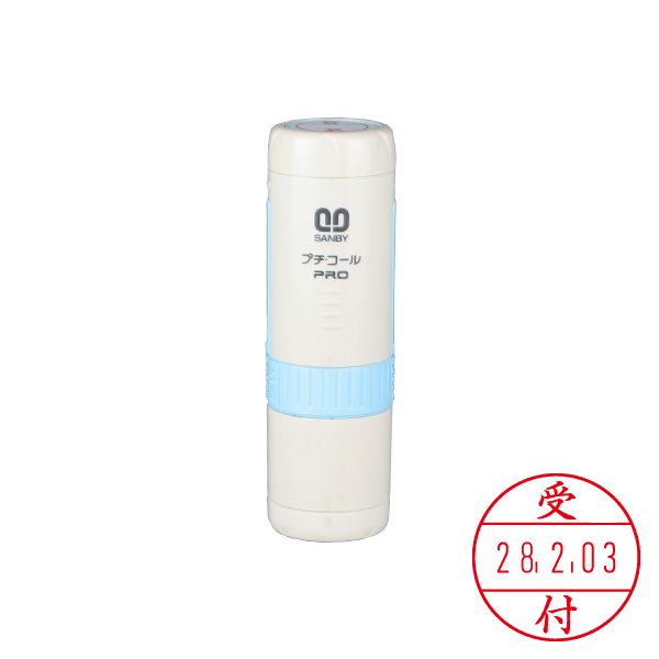 サンビー・プチコールPRO15(日付印)・元号・略西暦表示・印面直径:15mm(既製品・記帳用タイプ)【受付】・キャップ式・ブルー[SANBY・PETIT CALL PRO・PTP-15NB]
