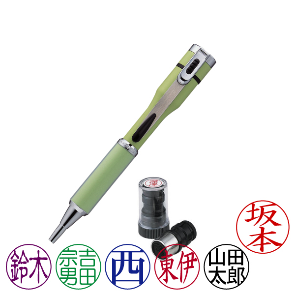 シャチハタ・ネームペン・キャップレスS・ペールグリーン・ボールペン+ネームペン用ネームX-GPS(別注品Aタイプ)・インク色:6色より選択[Shachihata・Xstamper・CAPLESS-S・TKS-CUS3+X-GPS]/商品コード:48403:48900