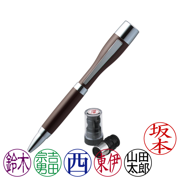 シャチハタ・ネームペン・ポケット・ブラウン・ボールペン+ネームペン用ネームX-GPS(別注品Bタイプ)・インク色:6色より選択[Shachihata・Xstamper・POCKET・TKS-NPC4+X-GPS]/商品コード:27717:48900