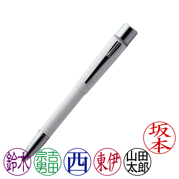 シャチハタ・ネームペン・プリモ・ホワイト・ボールペン+ネーム印(別注品Aタイプ)・お名入れ[レーザー彫刻]・インク色:6色より選択[Shachihata・Xstamper・TKS-NR5]/商品コード:27915