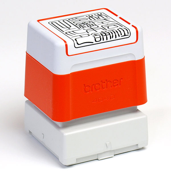 ブラザースタンプ・蔵書印・brother4040[浸透印]・ラバーグリップタイプ(本体:オレンジ・インク色:朱・印面37.3x37.3)