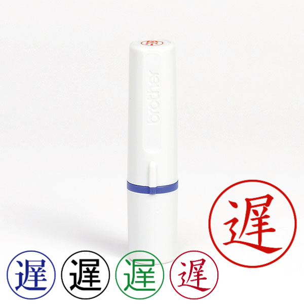 記帳用ビジネススタンプ【遅】(ブラザー記帳印・簿記印・ネーム6[brother・name6]・インク内蔵・印面直径約6mm)・書体/枠有無/インク色の選択可能