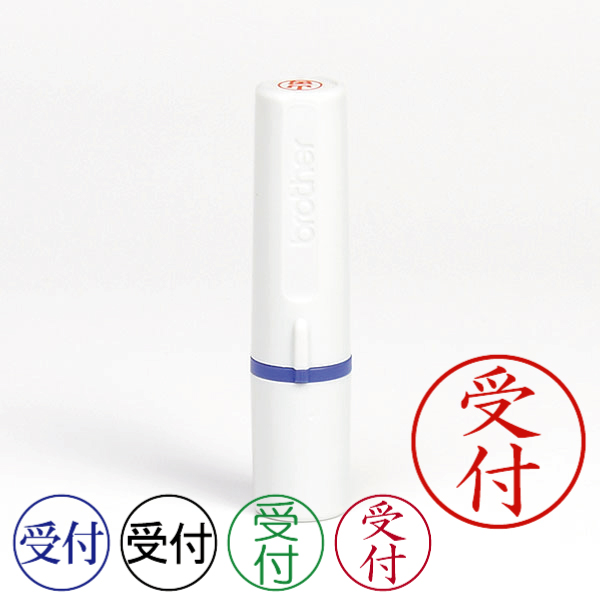 記帳用ビジネススタンプ【受付】(ブラザー記帳印・簿記印・ネーム6[brother・name6]・インク内蔵・印面直径約6mm)・書体/枠有無/インク色の選択可能