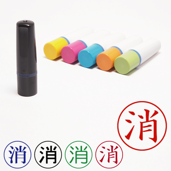 記帳用ビジネススタンプ【消】(ブラザー記帳印・簿記印・ネーム印[brother]・インク内蔵・印面直径約10mm)・書体/枠有無/本体色/インク色選択可能
