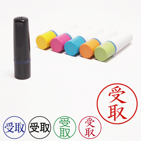 記帳用ビジネススタンプ【受取】(ブラザー記帳印・簿記印・ネーム印[brother]・インク内蔵・印面直径約10mm)・書体/枠有無/本体色/インク色の選択可能