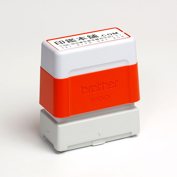 ブラザースタンプ[浸透印]・ラバーグリップタイプ・オリジナルスタンプ[データ入稿]・brother1850(本体:オレンジ・インク色:朱・印面:15.9x47.8)