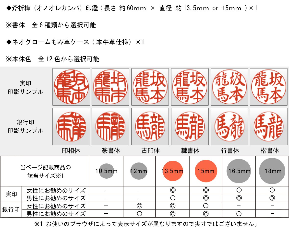 【キャンペーン商品】送料無料・オノオレカンバ(実印 or 銀行印/13.5mm or 15mm) + ネオクロームもみ革ケース付き【宅配便にておとどけ】