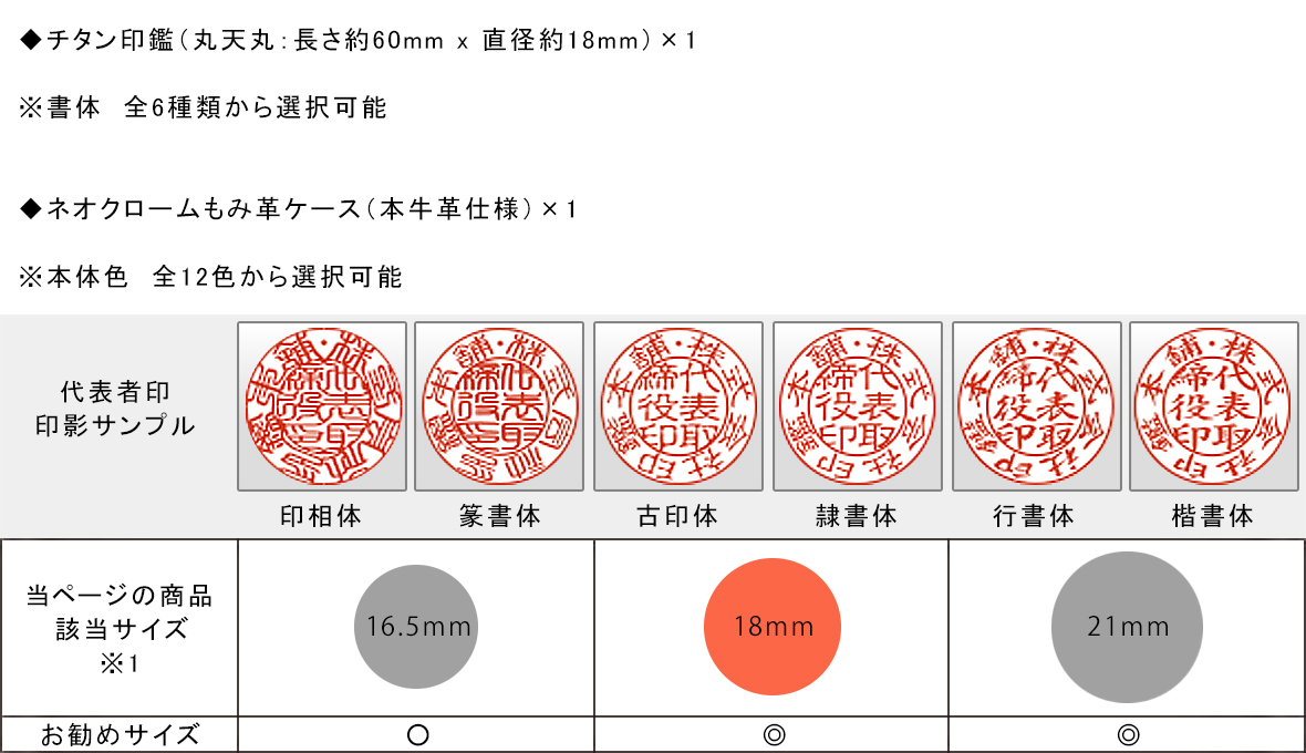 【キャンペーン商品】送料無料・法人代表者印(法人実印)ケースセット・チタンスワロフスキーアタリ付き・丸天丸18mm + ネオクロームもみ革ケース付き【宅配便にておとどけ】