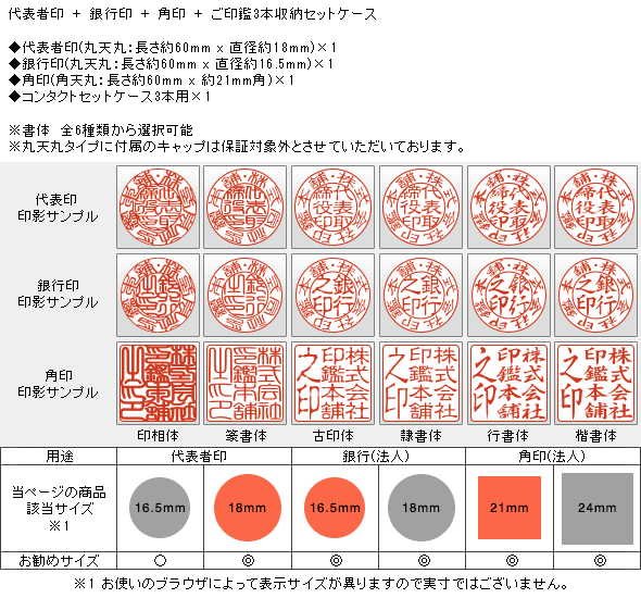 ![]() 法人印鑑 柘・3本セット ケース付き |