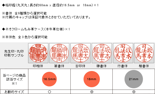 ![]() 先生印(職印)丸寸胴 もみ革印鑑ケース付き (全12色から選択可) |