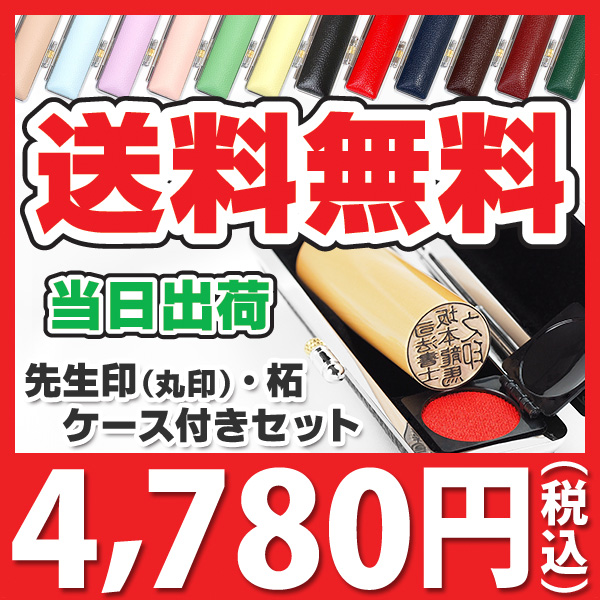 【キャンペーン商品】送料無料・先生印(職印・資格者印・士業印)丸印ケースセット・柘・丸寸胴18mm or 16.5mm + ネオクロームもみ革ケース付き【宅配便にておとどけ】