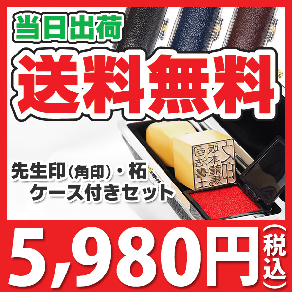 【キャンペーン商品】送料無料・先生印(職印・資格者印・士業印)角印ケースセット・柘・角天丸/21mm or 18mm + ネオクロームもみ革ケース付き【宅配便にておとどけ】