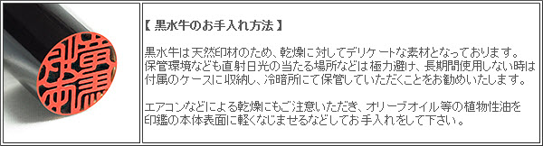 | 黒水牛は高い耐久性と黒く美しい外観が人気です。 | 印鑑上部が分かる「アタリ」を無料で付けられます。 |