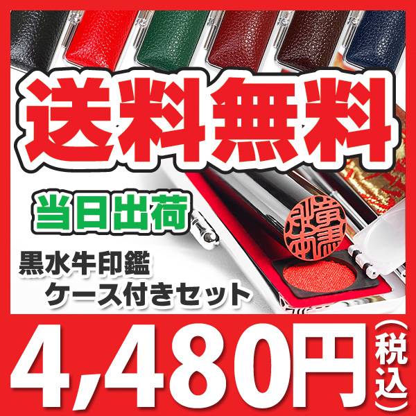 【キャンペーン商品】送料無料・黒水牛ご印鑑(実印 or 銀行印/13.5mm or 15mm)・もみ革ケース付き【宅配便にておとどけ】