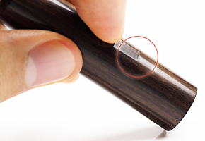 | 黒檀は耐久性が高く、安心してお使いいただけます。 | 印鑑上部が分かる「アタリ」を無料で付けられます。 |