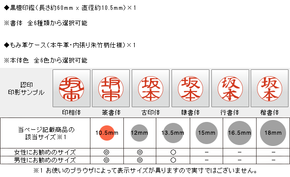 ![]() 黒檀印鑑 もみ革印鑑ケース付き (全6色から選択可) |