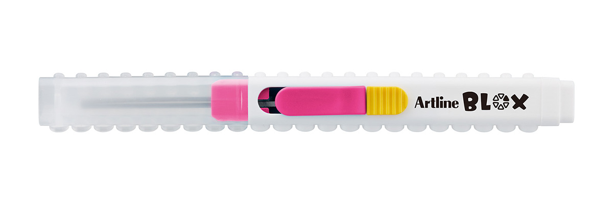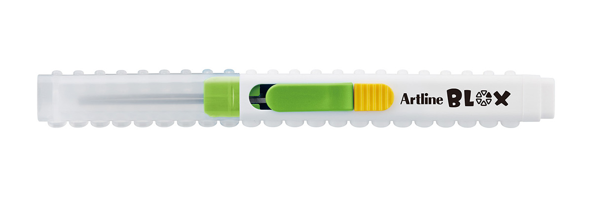 | 三角形のボディーの2側面に凹凸パターンが付いた連結式筆記具。 凹面と凸面をつなぎあわせることができ、よく使う筆記具をコンパクトにまとめて持ち歩けます。 | |